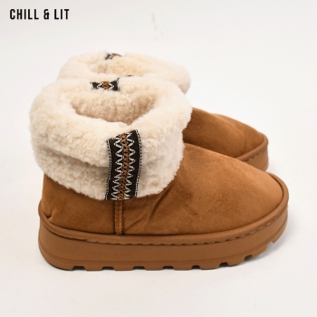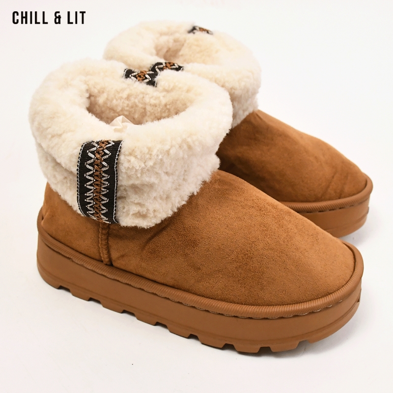 Bottines en Daim pour Femme avec Doublure Ultra Chaude et Douce, Tige à Hauteur 10cm et Semelle Hauteur 4.5cm Tendance cet Hiver.  Pointure sur la photo : 38.