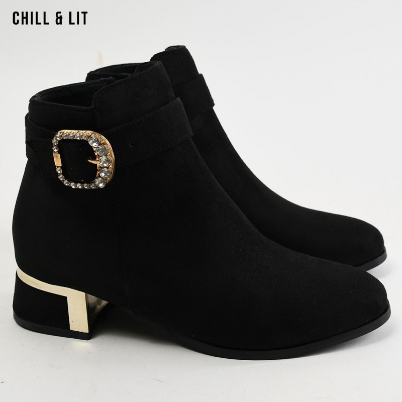 Bottines à Talon avec Doublure Super Douce pour Femme, Fermeture Glissière, Boucle En Acier Inoxydable et Hauteur Talon 3.5cm Tendances cet Hiver. Pointure Dans la Photo:36.