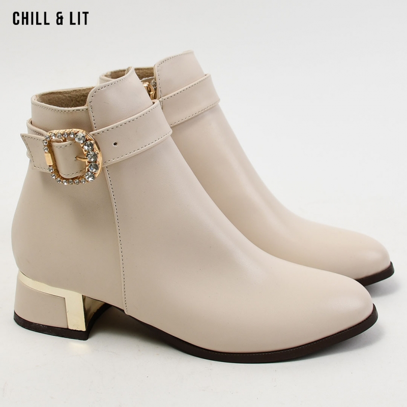 Bottines à Talon avec Doublure Super Douce pour Femme, Fermeture Glissière, Boucle En Acier Inoxydable et Hauteur Talon 3.5cm Tendances cet Hiver. Pointure Dans la Photo:36.