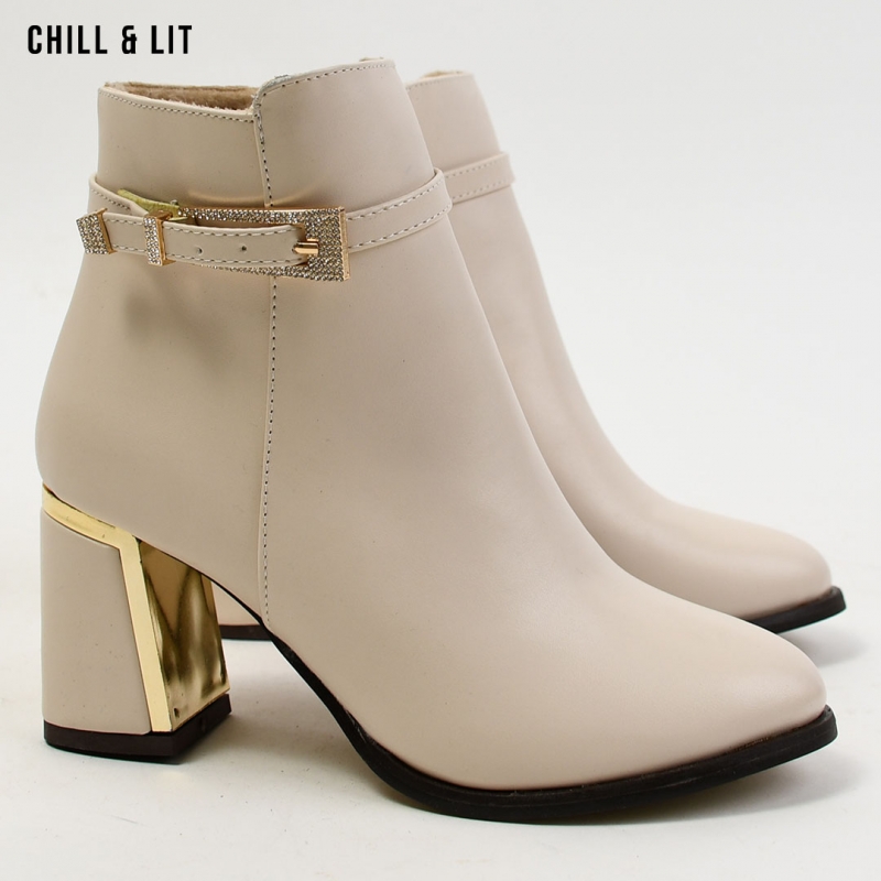 Bottines à Talon avec Doublure Super Douce pour Femme, Fermeture Glissière, avec une Bride Non Réglable et Hauteur Talon 7.5cm Tendances cet Hiver. Pointure Dans la Photo:37.