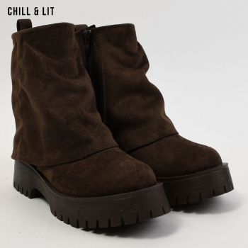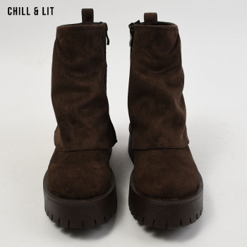 Bottes en Daim pour Femme avec Doublure Douce, Fermeture Glissière, Tige à Hauteur 16cm et Semelle Hauteur 5cm Tendance cet Hiver.  Pointure sur la photo : 36.