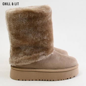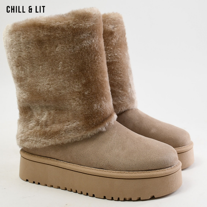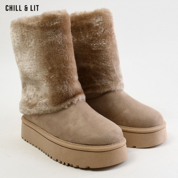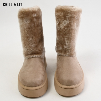 Bottines en Daim pour Femme avec Doublure Ultra Chaude et Douce, Tige à Hauteur 19cm et Semelle Hauteur 5cm Tendance cet Hiver.  Pointure sur la photo : 37.