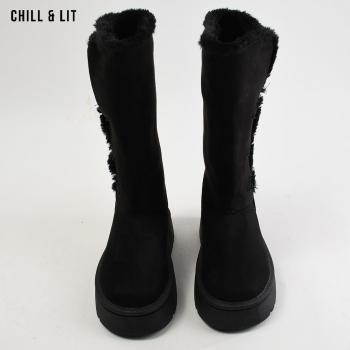 Bottines en Daim pour Femme avec Doublure Ultra Chaude et Douce, Tige à Hauteur 26cm et Semelle Hauteur 5cm Tendance cet Hiver.  Pointure sur la photo : 36.