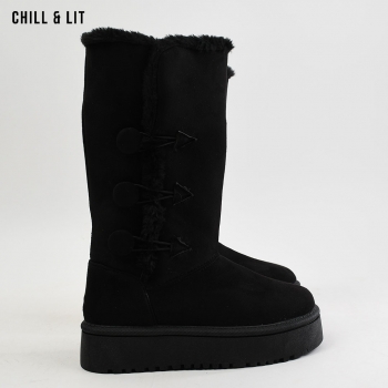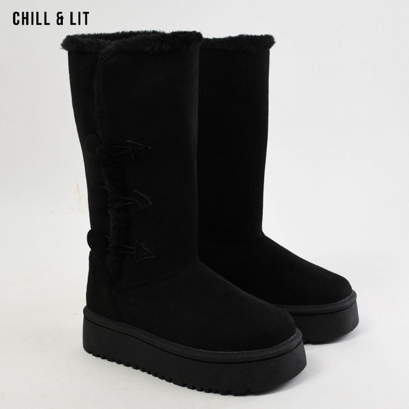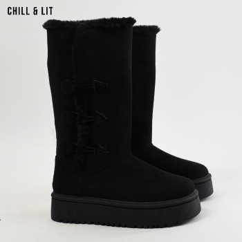 Bottines en Daim pour Femme avec Doublure Ultra Chaude et Douce, Tige à Hauteur 26cm et Semelle Hauteur 5cm Tendance cet Hiver.  Pointure sur la photo : 36.