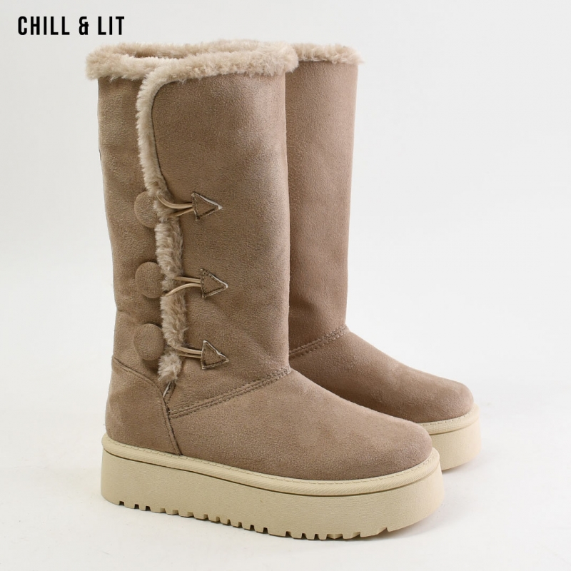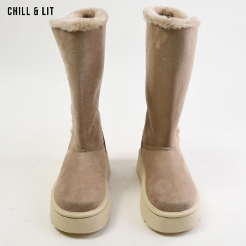 Bottines en Daim pour Femme avec Doublure Ultra Chaude et Douce, Tige à Hauteur 26cm et Semelle Hauteur 5cm Tendance cet Hiver. Pointure sur la photo : 36.