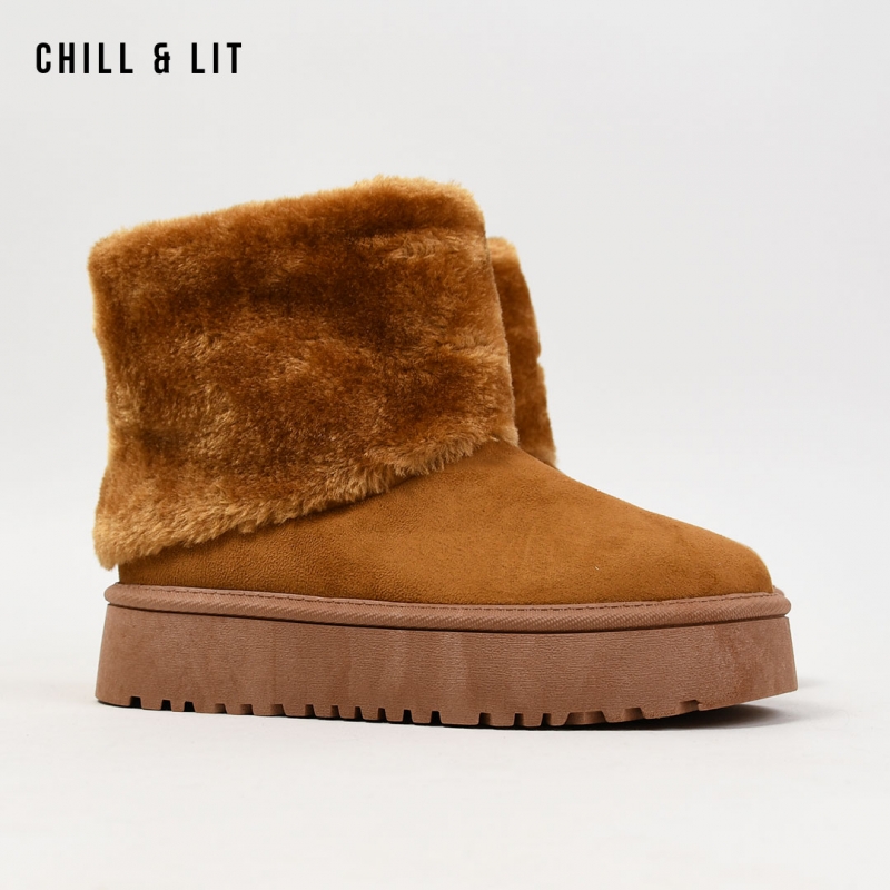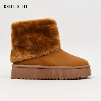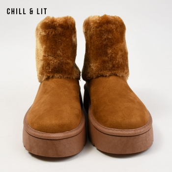 Bottines en Daim pour Femme avec Doublure Ultra Chaude et Douce, Tige à Hauteur 13cm et Semelle Hauteur 4.5cm Tendance cet Hiver.  Pointure sur la photo : 37.