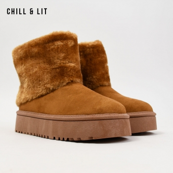 Bottines en Daim pour Femme avec Doublure Ultra Chaude et Douce, Tige à Hauteur 13cm et Semelle Hauteur 4.5cm Tendance cet Hiver.  Pointure sur la photo : 37.