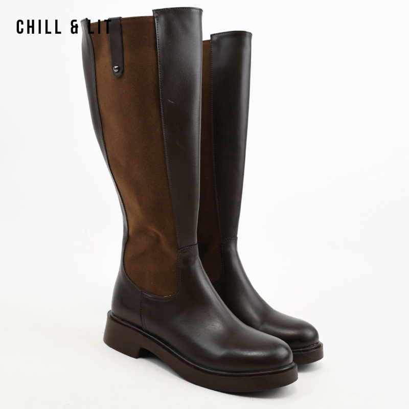 Bottes en Cuir pour Femme avec Doublure Douce, Fermeture Glissière, Tige à Hauteur 35cm et Semelle Hauteur 3.5cm Tendance cet Hiver.  Pointure sur la photo : 36.