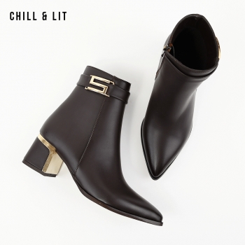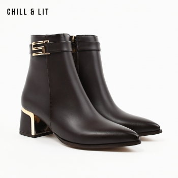 Bottes en Cuir pour Femme avec Doublure Douce, Fermeture Glissière, Tige à Hauteur 14cm et Talon de Hauteur 5cm Tendance cet Hiver.  Pointure sur la photo : 36.