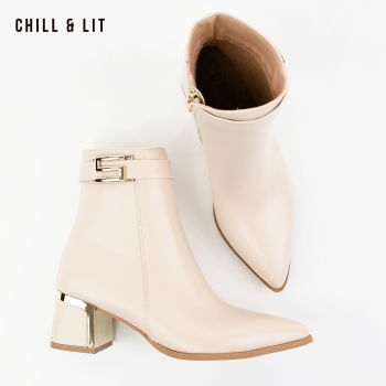 Bottes en Cuir pour Femme avec Doublure Douce, Fermeture Glissière, Tige à Hauteur 14cm et Talon de Hauteur 5cm Tendance cet Hiver. Pointure sur la photo : 36.