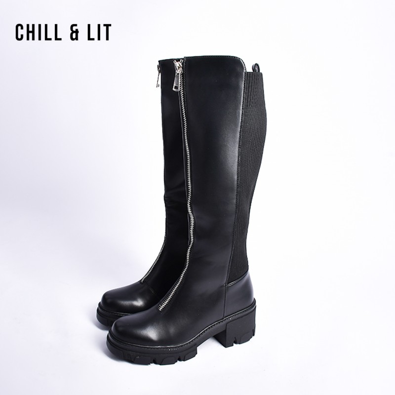 Des Bottines en Cuir avec Zip Argenté Sur le Devant et Empiècements Latéraux élastiques Hyper Tendances cet Hiver. Pointure sur la photo: 39.
