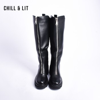 Des Bottines en Cuir avec Zip Argenté Sur le Devant et Empiècements Latéraux élastiques Hyper Tendances cet Hiver. Pointure sur la photo: 39.