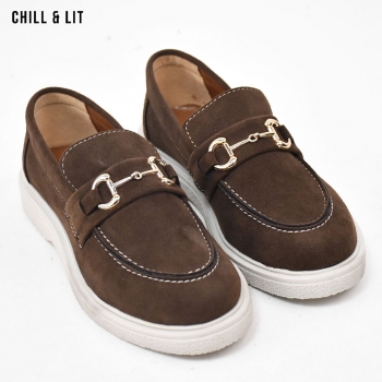 Mocassins A Plateforme en Daim Femme de Hauteur 2.5cm Bout Rond Hyper Tendances en ce Moment. Pointure sur la Photo:36