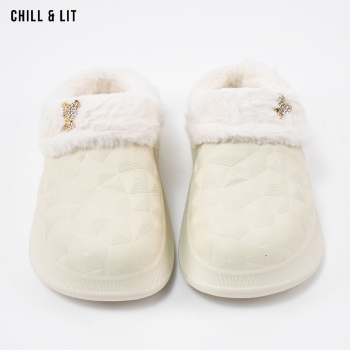 Crocs à Accessoire de Hauteur Semelle 4cm avec Doublure en Fausse Forure Super Chaudes, Confortables et Douces Super Tendances . Pointure sur la Photo:37.
