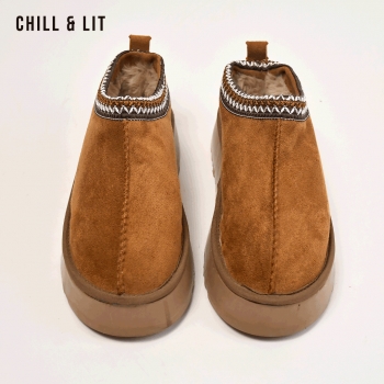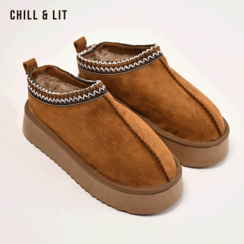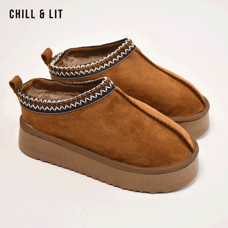 Pantoufles Femme en Daim avec Doublure en Fourrure Hauteur Semelle 4.5cm Super Chaude et Doux Super Tendances. Pointure sur la Photo:37.