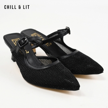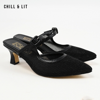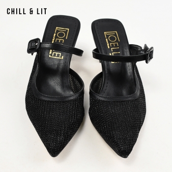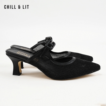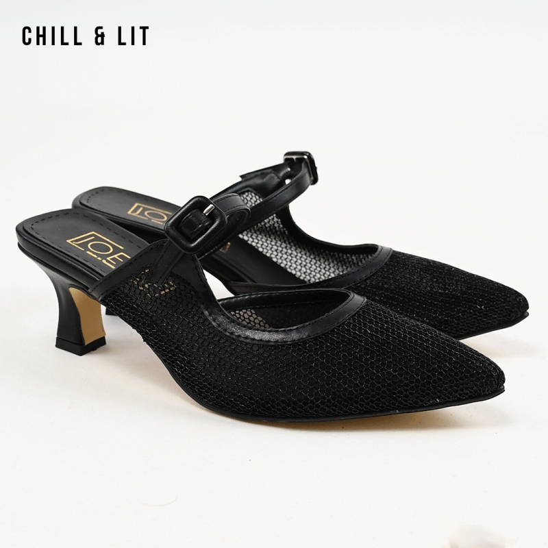 Mules à Talon pour femme avec maille transparente brodée, Bout Pointu, Hauteur de Talon 6cm Hyper Tendances en ce Moment. Pointure sur la Photo:36