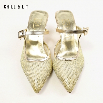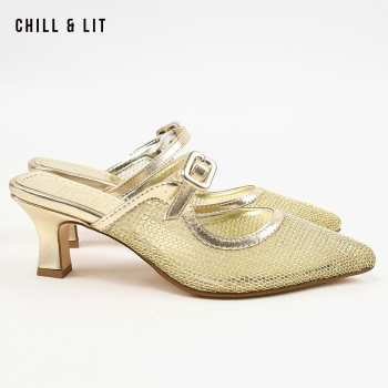 Mules à Talon pour femme avec maille transparente brodée, Bout Pointu, Hauteur de Talon 6cm Hyper Tendances en ce Moment. Pointure sur la Photo:36