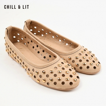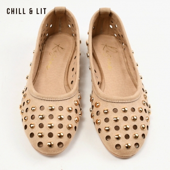 Ballerines à Perles pour Femme en Daim. Bout Rond Hyper Tendances en ce Moment. Pointure sur la Photo:36.