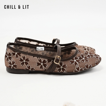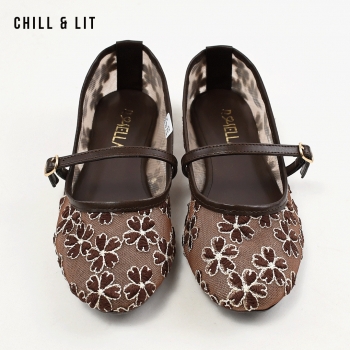Ballerines pour Femme en Maille Transparente Brodée à Fleurs Avec Brides Réglables. Bout Rond Hyper Tendances en ce Moment. Pointure sur la Photo:36.
