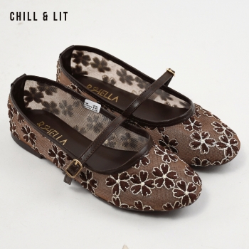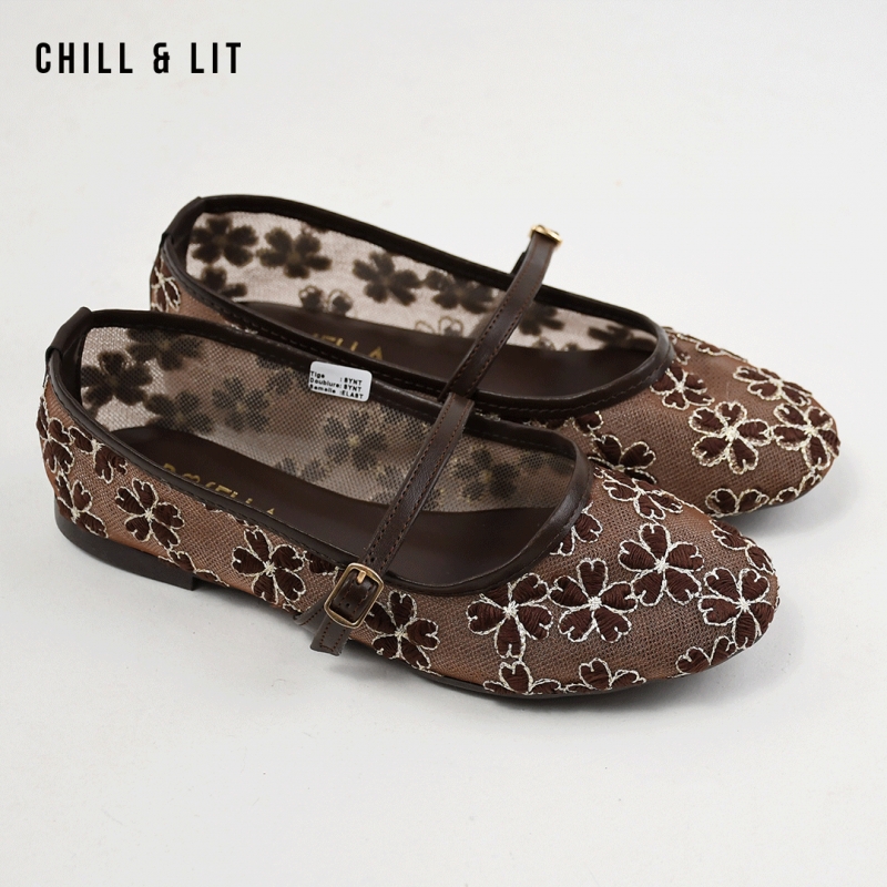 Ballerines pour Femme en Maille Transparente Brodée à Fleurs Avec Brides Réglables. Bout Rond Hyper Tendances en ce Moment. Pointure sur la Photo:36.