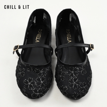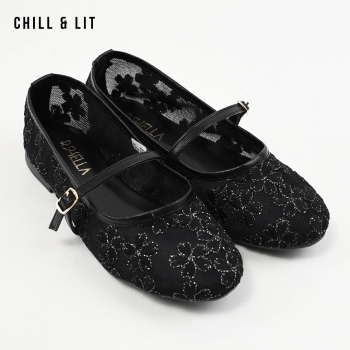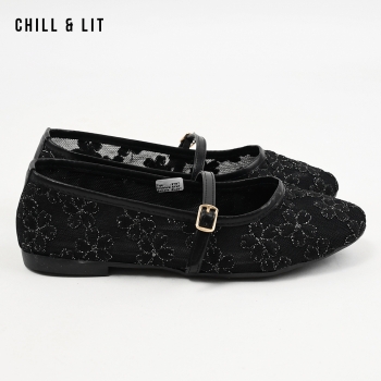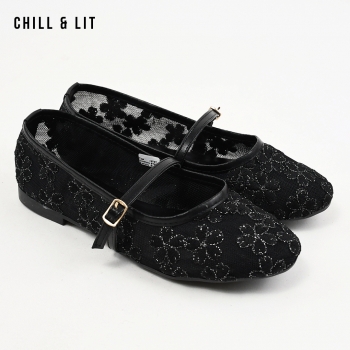 Ballerines pour Femme en Maille Transparente Brodée à Fleurs Avec Brides Réglables. Bout Rond Hyper Tendances en ce Moment. Pointure sur la Photo:36.