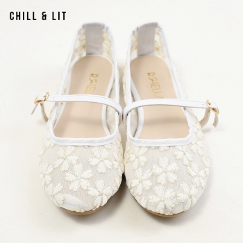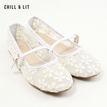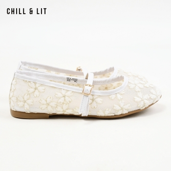 Ballerines pour Femme en Maille Transparente Brodée à Fleurs Avec Brides Réglables. Bout Rond Hyper Tendances en ce Moment. Pointure sur la Photo:36.