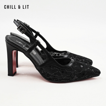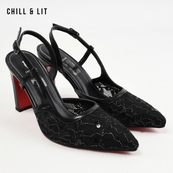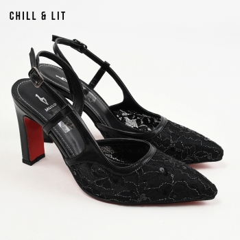 Escarpins à Talon pour femme en maille transparente brodée de Fleurs, Bout Pointu, Hauteur de Talon 9cm. Hyper Tendances en ce Moment. Pointure sur la Photo:37.