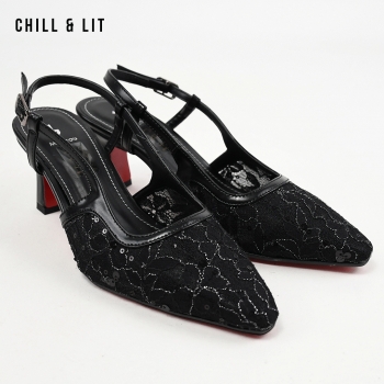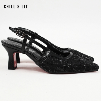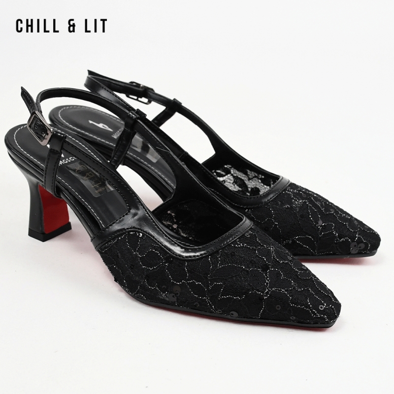 Escarpins à Talon Moyen pour femme en maille transparente brodée, Bout Pointu, Hauteur de Talon 6cm Hyper Tendances en ce Moment. Pointure sur la Photo:36