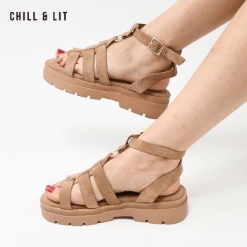 Sandales Daim pour Femme Avec Brides Réglables, Bout Rond. Hauteur Semelle 4.5cm. Hyper Tendances Cet Eté. Pointure sur la Photo:36.