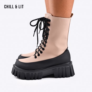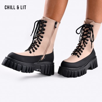 Chill&Lit Vous Propose Des Bottines En Cuir Chunky avec Fermeture Glissière Hyper tendance en ce moment.