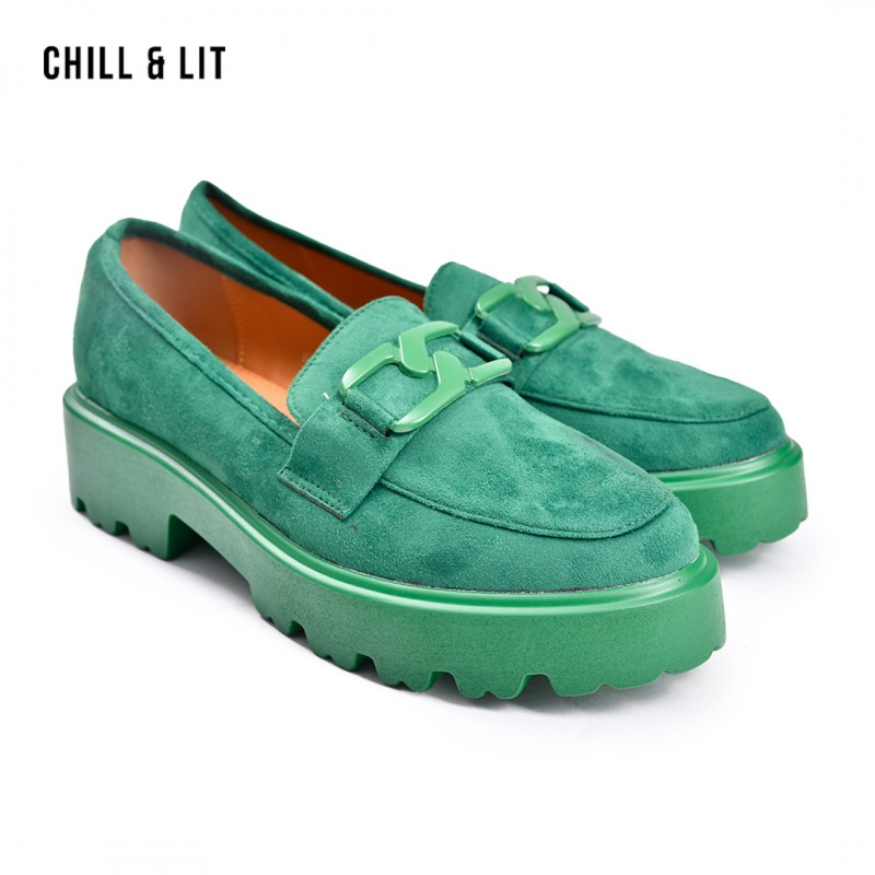 Mocassins Femme en Daim avec Bande Décorée Super Tendances cette Saison. Pointure sur la Photo:39.