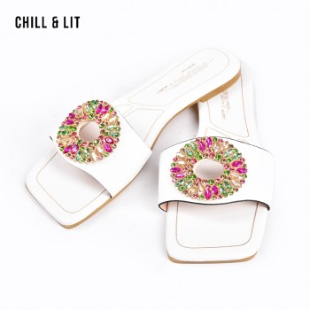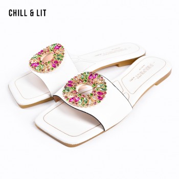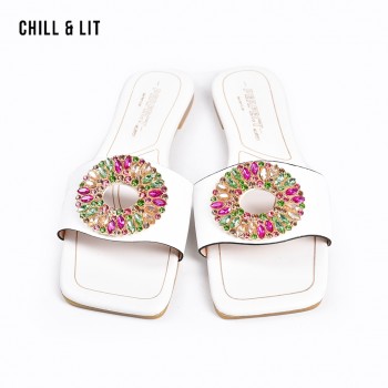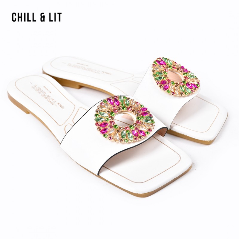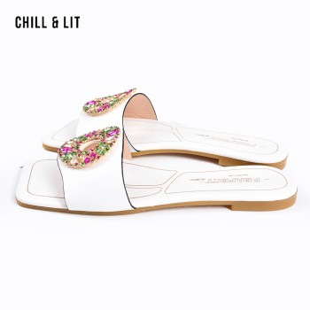 Mules Plates Femme Bout Carré avec Strass Super Tendances en ce Moment. La Pointure sur la Photo:38