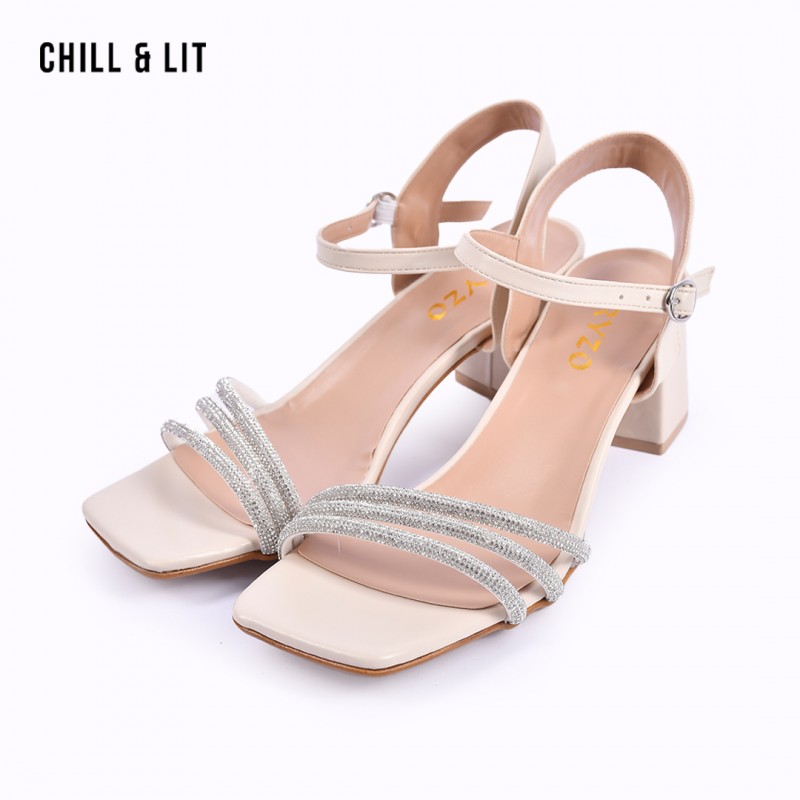 Sandales à Talon avec Lanière Réglable et Strass Hyper Tendances en ce Moment. Hauteur du Talon 7cm. Pointure sur la Photo:39
