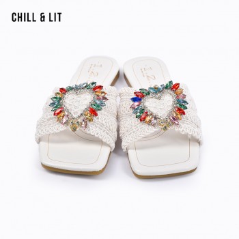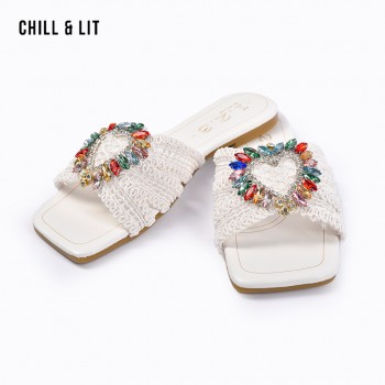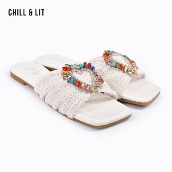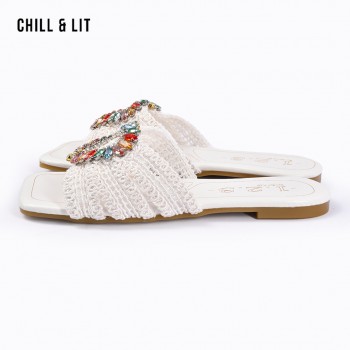 Mules Plates Femme Bout Carré avec Bride Tressée avec Cristaux Hyper Tendances en ce Moment. La Pointure sur la Photo:38