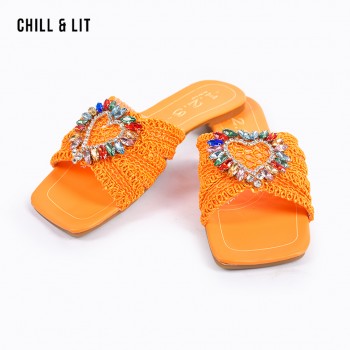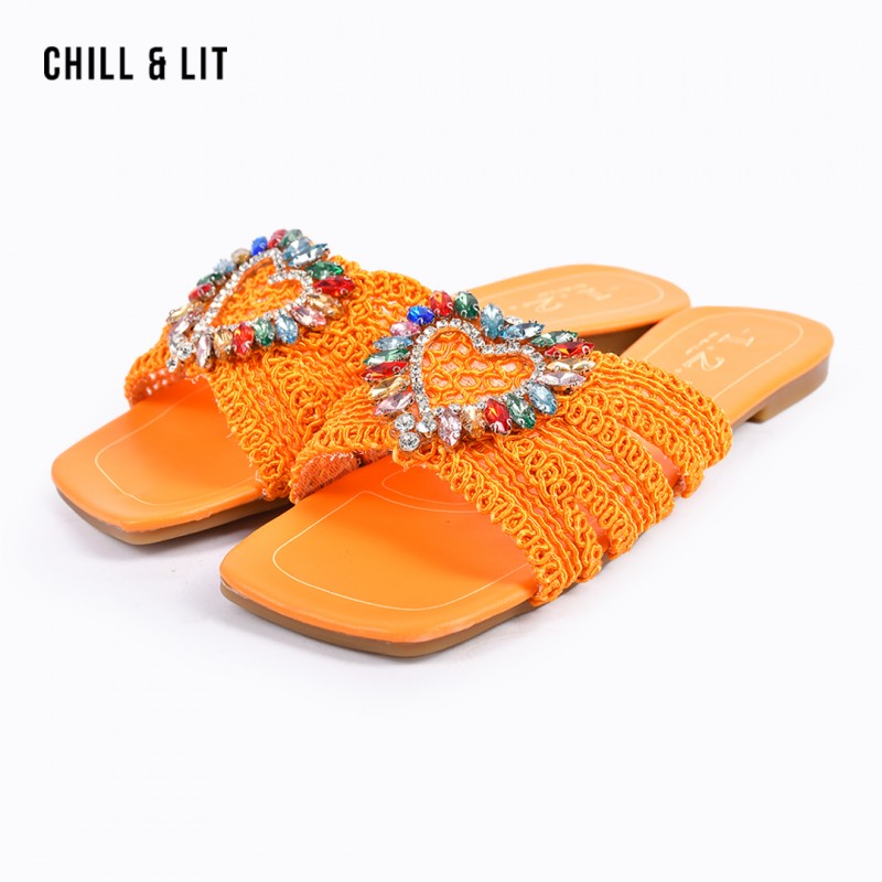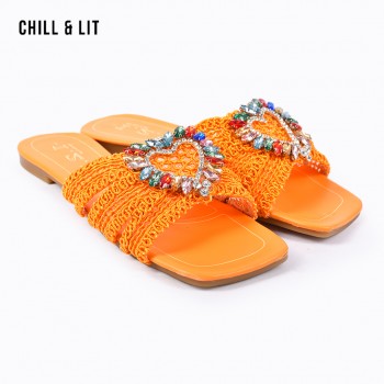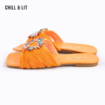 Mules Plates Femme Bout Carré avec Bride Tressée avec Cristaux Hyper Tendances en ce Moment. La Pointure sur la Photo:38