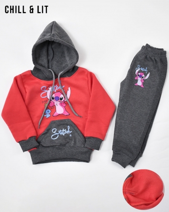 Ensemble survêtement Fillette Stitch en Molleton Gratté ultra doux et hyper confortable. Sweat à capuche + pantalon Jogging confortable, chaud et parfait pour un look mignon et tendance au quotidien. L'ensemble sur La Photo est La taille 1ans