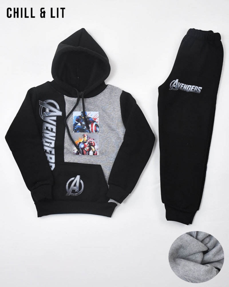 Ensemble survêtement enfants Avengers en Molleton Gratté ultra doux et hyper confortable. Sweat à capuche + pantalon Jogging confortable, chaud et parfait pour un look mignon et tendance au quotidien. L'ensemble sur La Photo est La taille 4ans