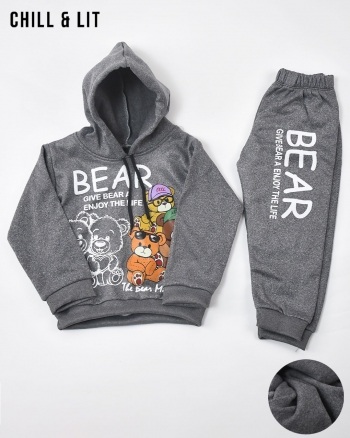 Survêtement Jogging Garçon en coton mélangé, composé d’un sweat à capuche et d’un pantalon jogger. Motif ludique avec des ours Confortable et stylé, parfait pour les journées cocooning ou les sorties décontractées. L'ensemble sur La Photo est La taille 4ans