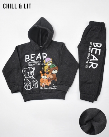 Survêtement Jogging Garçon en coton mélangé, composé d’un sweat à capuche et d’un pantalon jogger. Motif ludique avec des ours Confortable et stylé, parfait pour les journées cocooning ou les sorties décontractées. L'ensemble sur La Photo est La taille 4ans