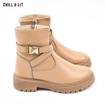 Des Bottines en Cuir Fillette à Semelle Hauteur 4.5cm et Tige à Hauteur 15.5cm Avec Applique Inoxydable Tendances cet Hiver.