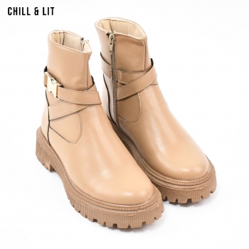 Des Bottines en Cuir Fillette à Semelle Hauteur 4.5cm et Tige à Hauteur 15.5cm Avec Applique Inoxydable Tendances cet Hiver.