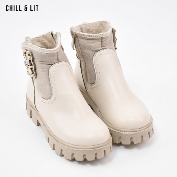 Des Bottines en Cuir Fillette avec Doublure Chaude et Douce, Avec Accessoire  Inoxydable, Fermeture Glissière, Semelle Hauteur 3cm et Tige à Hauteur 10cm Tendances cet Hiver. Pointure Dans la Photo:29.