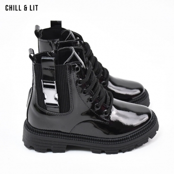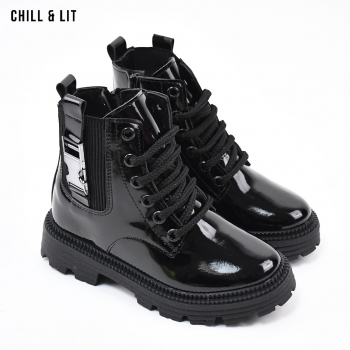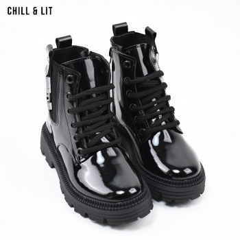 Des Bottines en Cuir Fillette à Semelle Hauteur 3.5cm et Tige à Hauteur 11.5cm Avec Applique Inoxydable,  Fermeture Glissière. Tendances cet Hiver. Pointure Dans la Photo:29.