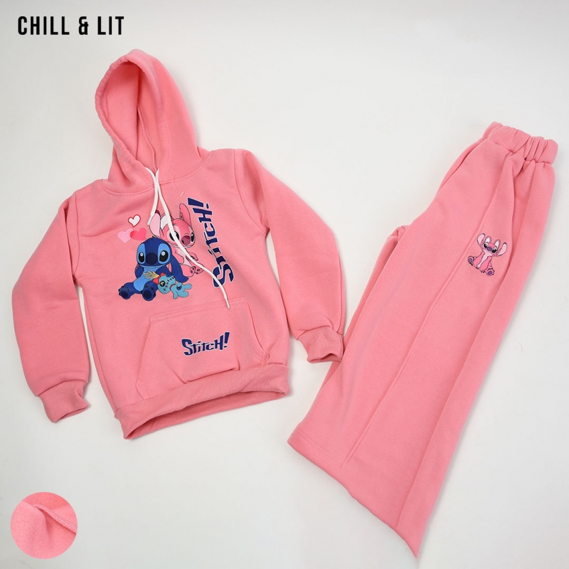 Survêtement Fillette Stitch en Molleton Gratté Ultra Doux et Hyper Confortable. Sweat à Capuche + Pantalon Jogging Large, Confortable, Chaud et Parfait pour un look mignon et Tendance au quotidien. L'ensemble sur La Photo est La taille 14ans.
