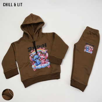 Survêtement Fillette Stitch en Molleton Gratté Ultra Doux et Hyper Confortable. Sweat à Capuche + Pantalon Jogging Confortable. Tendance au quotidien. L'ensemble sur La Photo est La taille 1An.