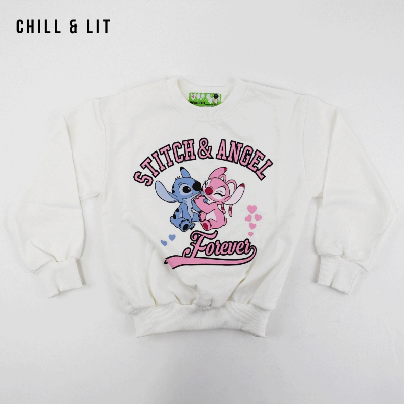 Pull fillette Stitch à col rond, manches longues. Super Tendance Aïd. Le Mannequin Porte La Taille 4ans.