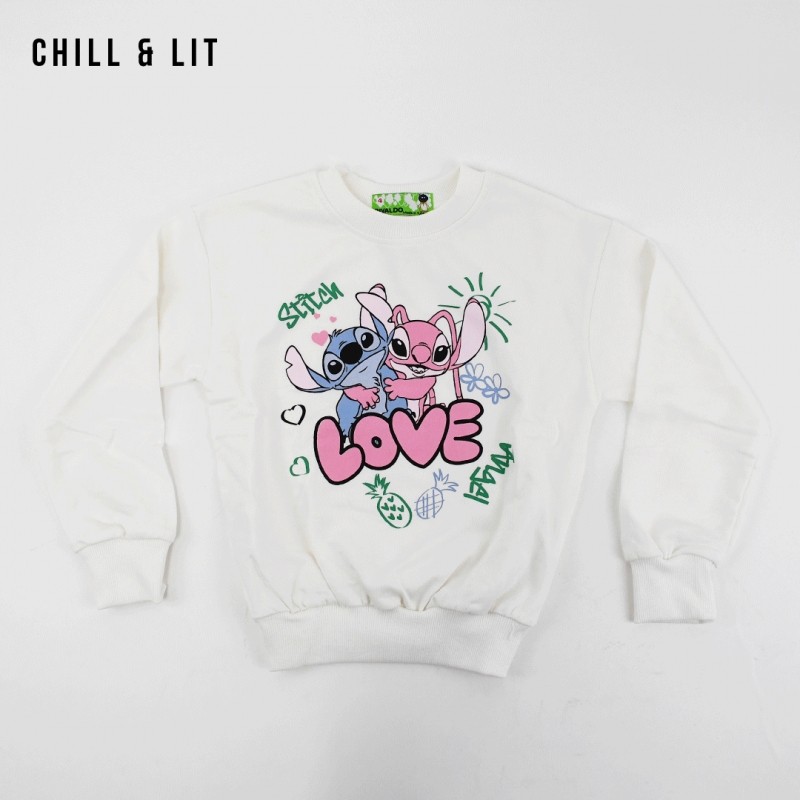 Pull fillette Stitch à col rond, manches longues. Super Tendance Aïd. Le Mannequin Porte La Taille 4ans.