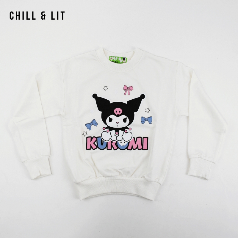 Sweatshirt Fillette avec impression graphique à col rond, manches longues. Super Tendance Aïd. Le Mannequin Porte La Taille 4ans.