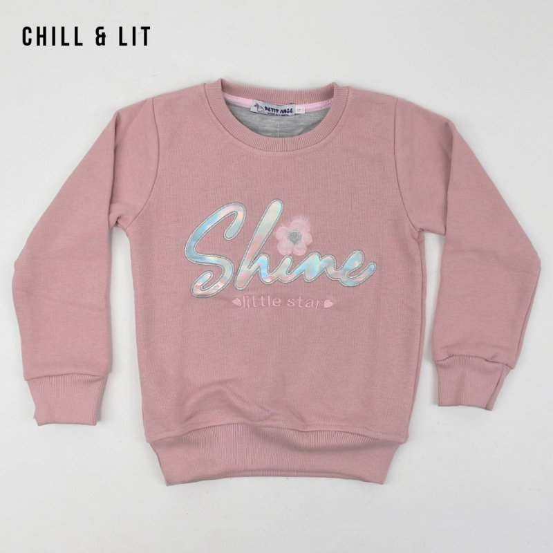 Sweatshirt Fillette avec Impression Graphique à Col rond, Manches Longues. Super Tendance Aïd. Le Mannequin Porte La Taille 4ans.
