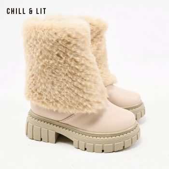 Des Bottines en Cuir Fillette à Semelle Hauteur 4cm et Tige à Hauteur 15cm. Tendances cet Hiver. Pointure Dans la Photo:29.